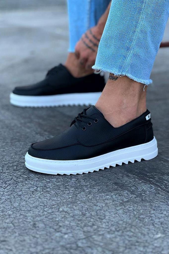 WG506 Beyaz Erkek Saraclı Casual Ayakkabı (WG-506-SİYAH)