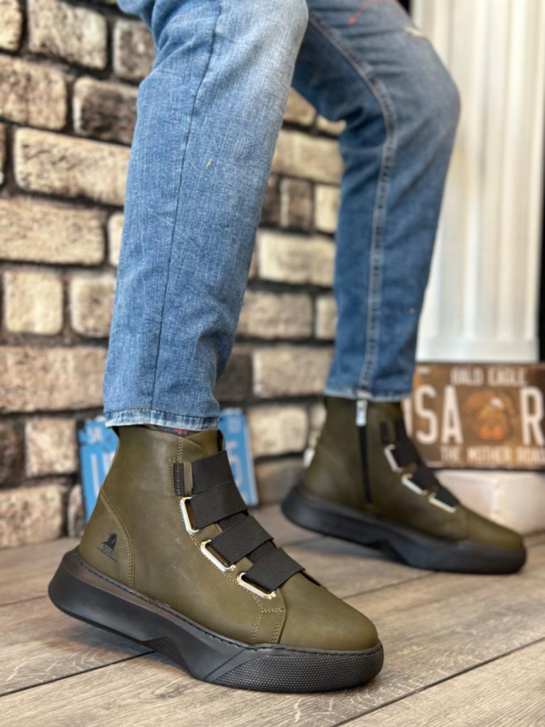BA0142 Bantlı Erkek Yüksek Taban Haki Spor Bot (BA0142-HK)