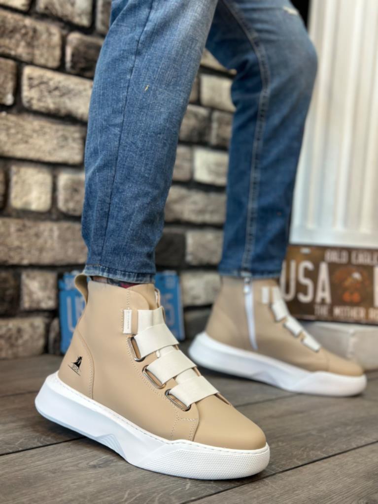 BA0142 Bantlı Erkek Yüksek Taban Krem Beyaz Spor BotBA0142 Bantlı Erkek Yüksek Taban Krem Beyaz Spor Bot