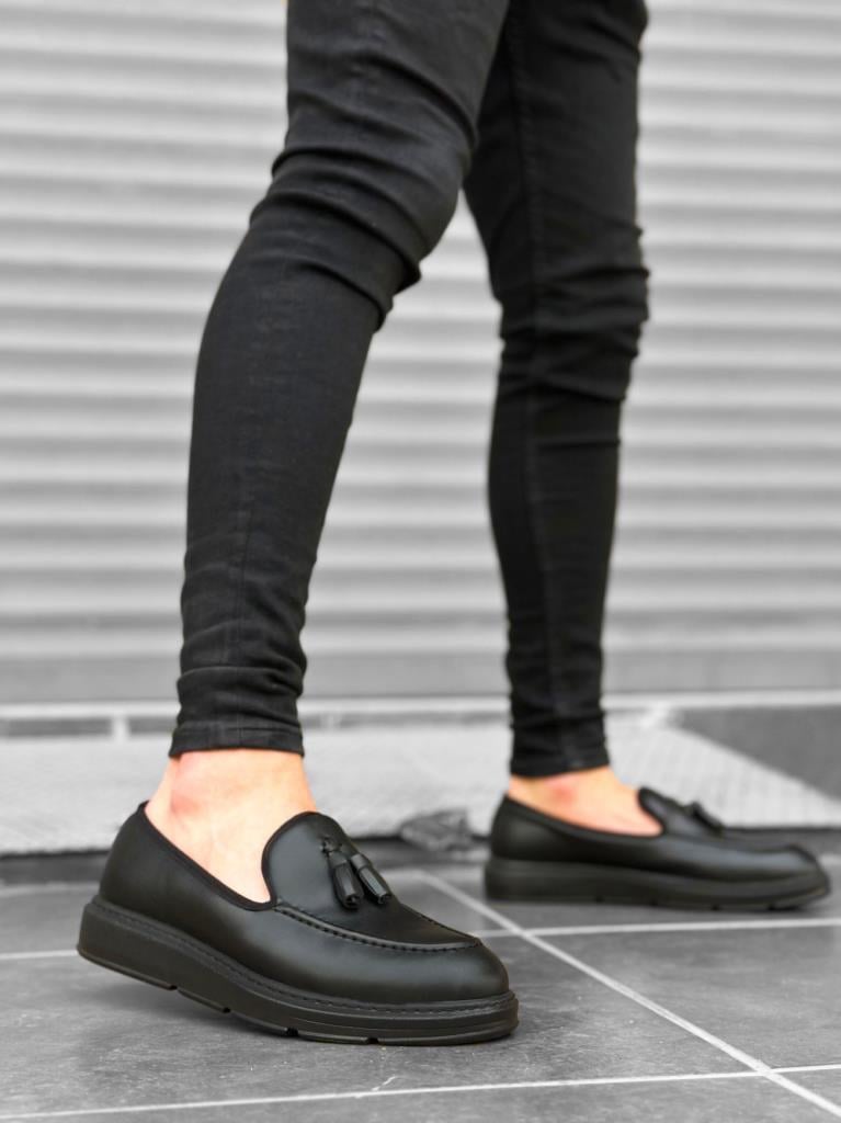 BA0005 Bağcıksız Yüksek Siyah Taban Klasik Cilt Deri Püsküllü Corcik Erkek Ayakkabı