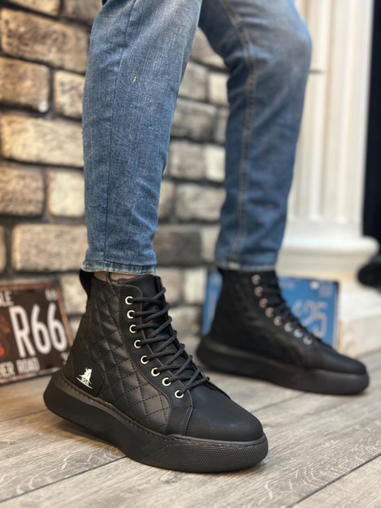 BA0159 Bağcıklı Siyah Kapitone Erkek Yüksek Taban Spor Bot
