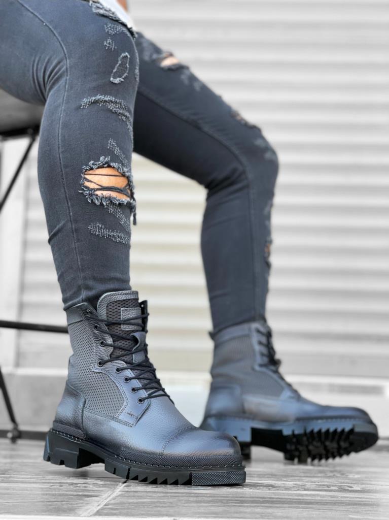 BA0183 İçi Dışı Hakiki Deri Gri Erkek Postal Bot (BA-0183-GR)