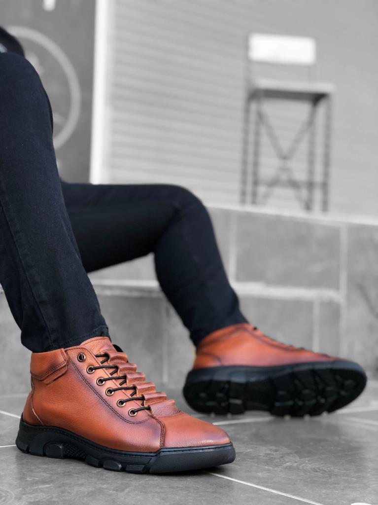 BA0213 Gizli Bağcıklı Hakiki Deri Taba Erkek Yarım Bilek  Bot