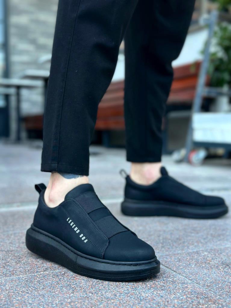 BA0307 BOA Kalın Yüksek Taban Çift Bant Siyah Erkek Ayakkabı (BA0307-KMR)