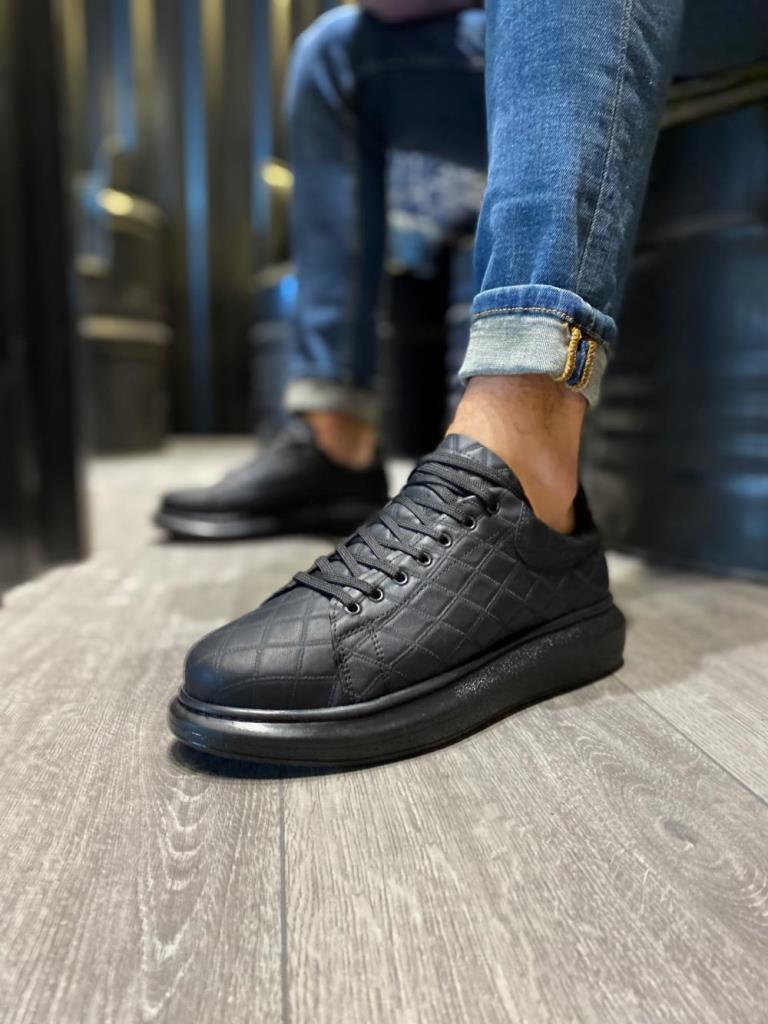 Knack Yüksek Taban Günlük Ayakkabı 044 KAPİTONE Siyah (Siyah Taban)