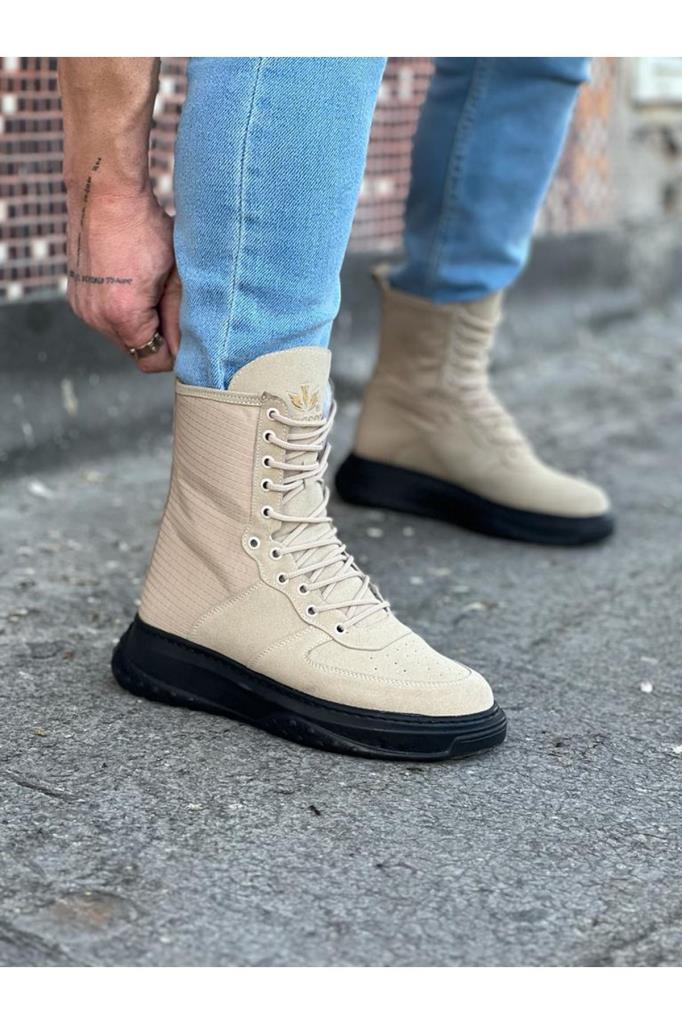 Wagoon WG012 Bej Kömür Süet Cilt Uzun Bağcıklı Bot (WG-012-BEJ-KÖMÜR-SÜET)