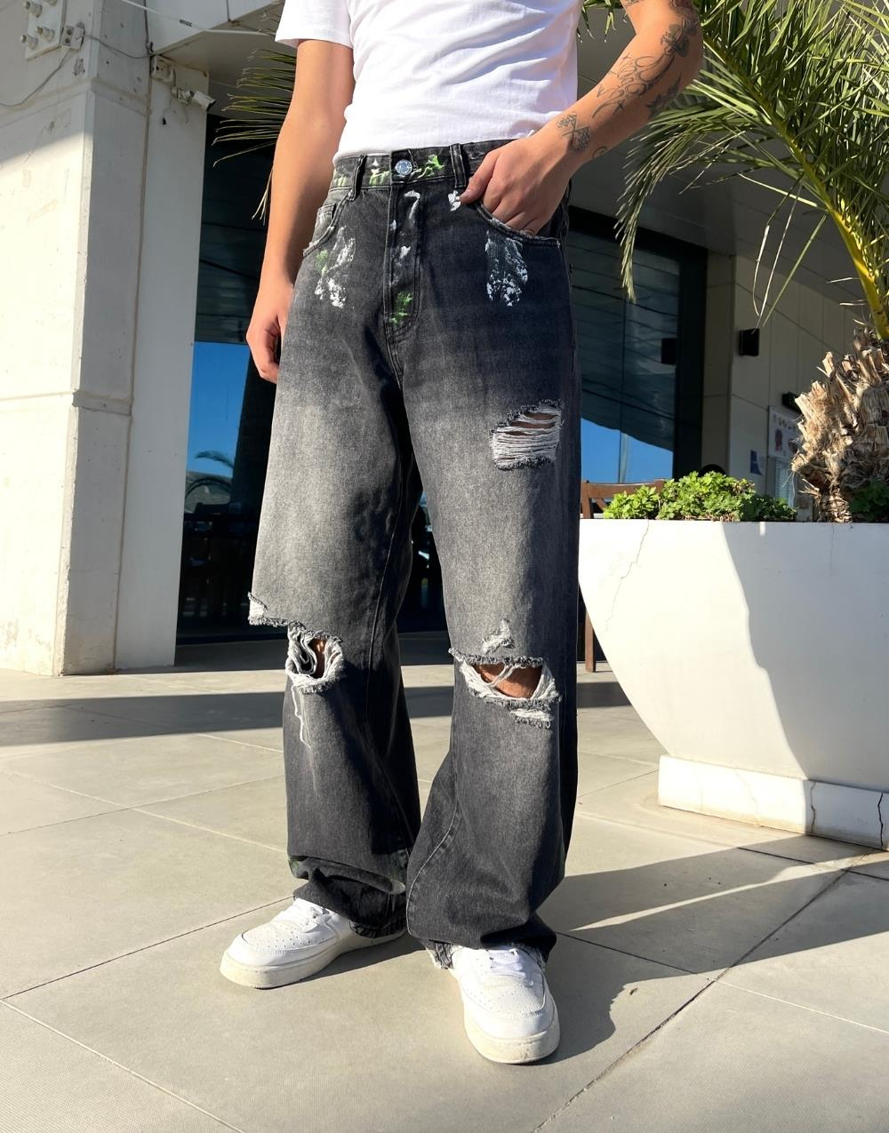 Premium Distressed Splash Baggy Kot Pantolon (BPM-Y2093Q23)